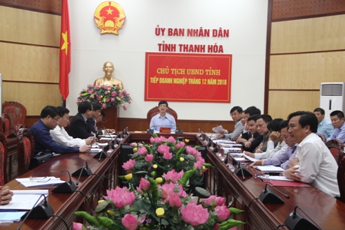 Với mục đích tạo sự gần gũi, thân thiện để doanh nghiệp, nhà đầu tư mạnh dạn, cởi mở, tích cực trao đổi, kiến nghị, hiến kế trên tinh thần xây dựng và sự phát triển chung của tỉnh; đồng thời thể hiện sự quan tâm, khuyến khích và cầu thị của lãnh đạo tỉnh đối với sự phát triển của cộng đồng doanh nghiệp; Chủ tịch UBND tỉnh định kỳ hằng tháng đều tiếp doanh nghiệp 01 buổi nhằm kịp thời tháo gỡ những khó khăn, vướng mắc trong hoạt động đầu tư, sản xuất kinh doanh trên địa bàn tỉnh. Tại buổi tiếp, đã có đại diện của nhiều doanh nghiệp đến phản ánh những khó khăn, vướng mắc, như: Tổng công ty cổ phần đầu tư xây dựng Minh Tuấn; Ngân hàng Nông nghiệp và PTNT VN – Chi nhánh Sầm Sơn Thanh Hóa; Công ty CP Đầu tư XD và PT An Phát; Hiệp hội Đá Thanh Hóa – Cụm CN Làng nghề, xã Đông Hưng, TP Thanh Hóa...