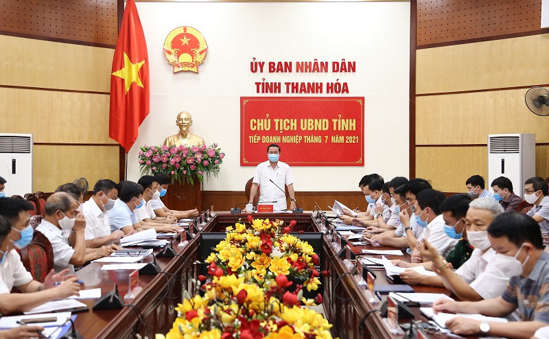Chiều ngày 20/7/2021, đồng chí Đỗ Minh Tuấn - Phó Bí thư Tỉnh ủy, Chủ tịch UBND tỉnh chủ trì buổi tiếp doanh nghiệp định kỳ tháng 7 năm 2021 nhằm trao đổi, tháo gỡ khó khăn, vướng mắc của doanh nghiệp; tạo điều kiện thuận lợi cho doanh nghiệp đẩy mạnh sản xuất, kinh doanh, đặc biệt trong bối cảnh đại dịch COVID-19 ảnh hưởng tới mọi mặt của đời sống xã hội.