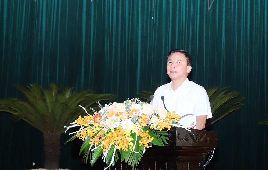 Đồng chí Đỗ Trọng Hưng - Ủy viên Ban Chấp hành Trung ương Đảng, Bí thư Tỉnh ủy, Chủ tịch HĐND tỉnh, Trưởng Ban Chỉ đạo thực hiện các CTMTQG tỉnh, giai đoạn 2021 - 2025 phát biểu kết luận hội nghị. |