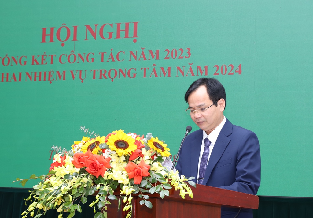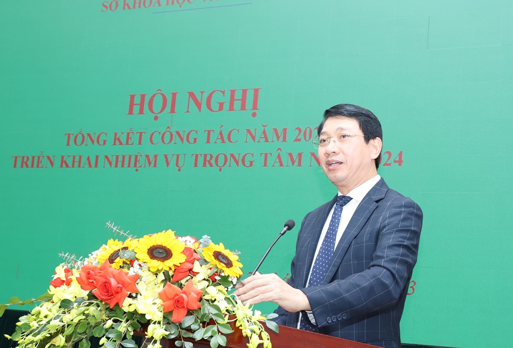 Phát biểu tại hội nghị, Phó Chủ tịch UBND tỉnh, Chủ tịch Hội đồng KH&CN tỉnh Lê Đức Giang ghi nhận và biểu dương những thành tích của ngành KH&CN đã đạt được trong năm 2023.