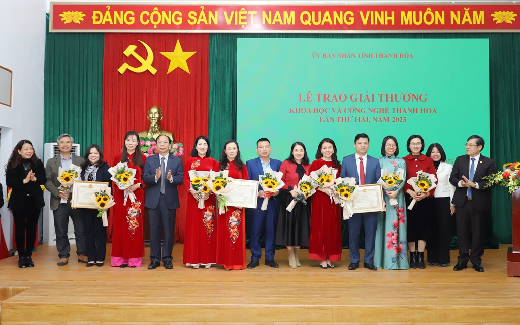 Cũng tại hội nghị, Phó Chủ tịch UBND tỉnh, Chủ tịch Hội đồng KH&CN tỉnh Lê Đức Giang đã trao 6 Giải thưởng KH&CN tỉnh Thanh Hóa năm 2023 cho 6 công trình và cụm công trình của các tác giả và nhóm tác giả. Phó Chủ tịch UBND tỉnh Lê Đức Giang đề nghị các tác giả đạt giải thưởng KH&CN tiếp tục sáng tạo, cải tiến, hoàn thiện sản phẩm, mở rộng mô hình, ứng dụng vào sản xuất, tạo ra sự lan tỏa rộng rãi trong cộng đồng, phục vụ thiết thực sản xuất, đời sống đạt hiệu quả cao hơn nữa.