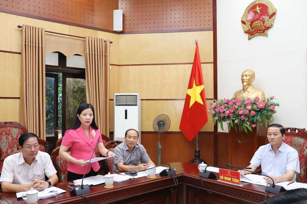 Đồng chí Phạm Thị Thanh Thủy, Ủy viên BTV Tỉnh ủy, Trưởng Ban Dân vận Tỉnh ủy, Chủ tịch Ủy ban MTTQ tỉnh phát biểu tại phiên họp.