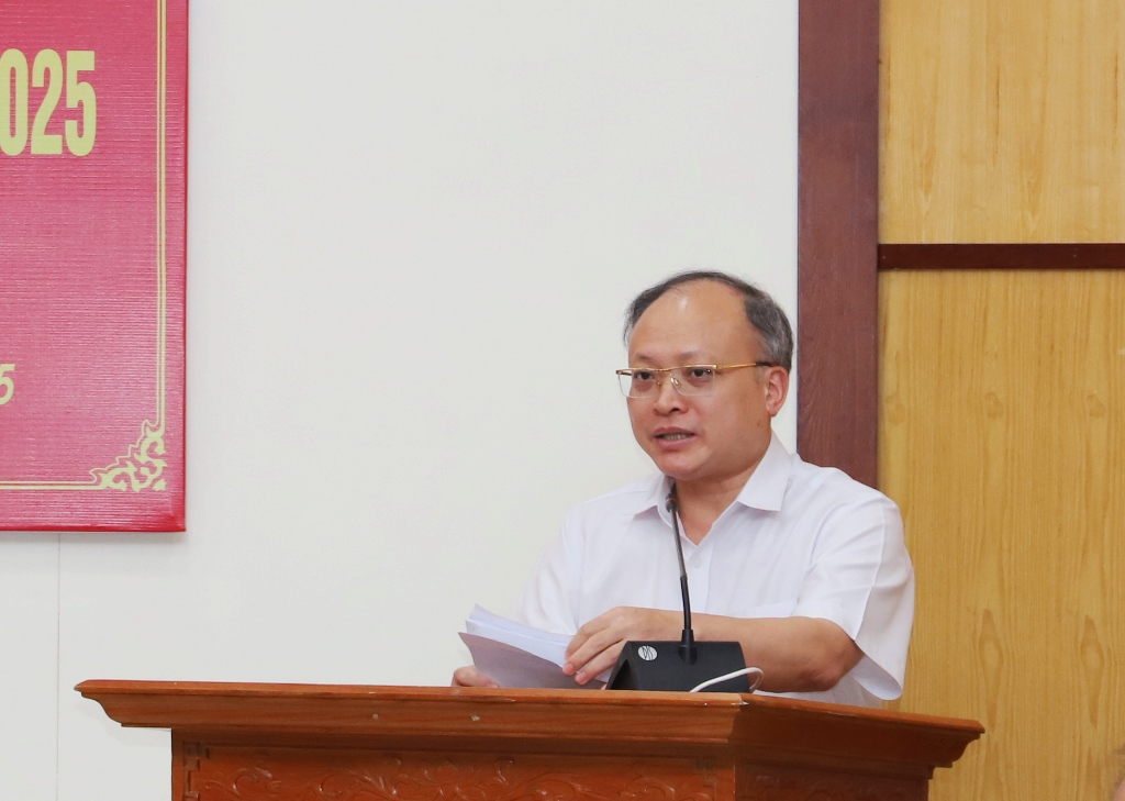 Giám đốc Sở Nông nghiệp và Môi trường Cao Văn Cường báo cáo tại hội nghị.