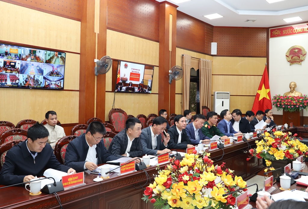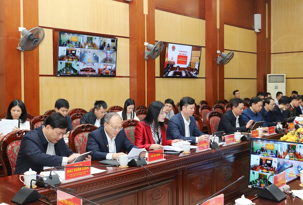 Toàn cảnh hội nghị tại điểm cầu UBND tỉnh.