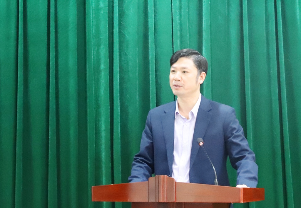 Phó Chánh Văn phòng UBND tỉnh Hoàng Văn Thi phát biểu tại hội nghị.