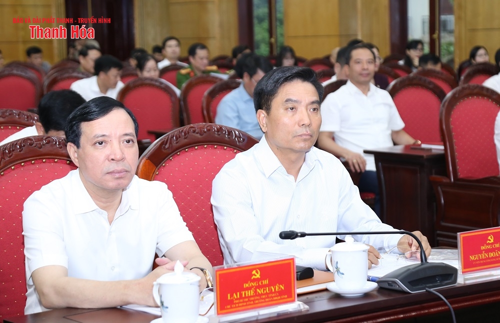 Dự hội nghị tại điểm cầu tỉnh Thanh Hóa có các đồng chí: Nguyễn Doãn Anh, Ủy viên Trung ương Đảng, Bí thư Tỉnh ủy; Lại Thế Nguyên, Phó Bí thư Thường trực Tỉnh ủy, Chủ tịch HĐND tỉnh, Trưởng Đoàn ĐBQH tỉnh; Đỗ Minh Tuấn, Phó Bí thư Tỉnh ủy, Chủ tịch UBND tỉnh; Trịnh Tuấn Sinh, Phó Bí thư Tỉnh ủy; các đồng chí Ủy viên Ban Thường vụ Tỉnh ủy, Thường trực HĐND, UBND, Ủy ban MTTQ tỉnh; đại diện lãnh đạo các sở, ban, ngành cấp tỉnh.