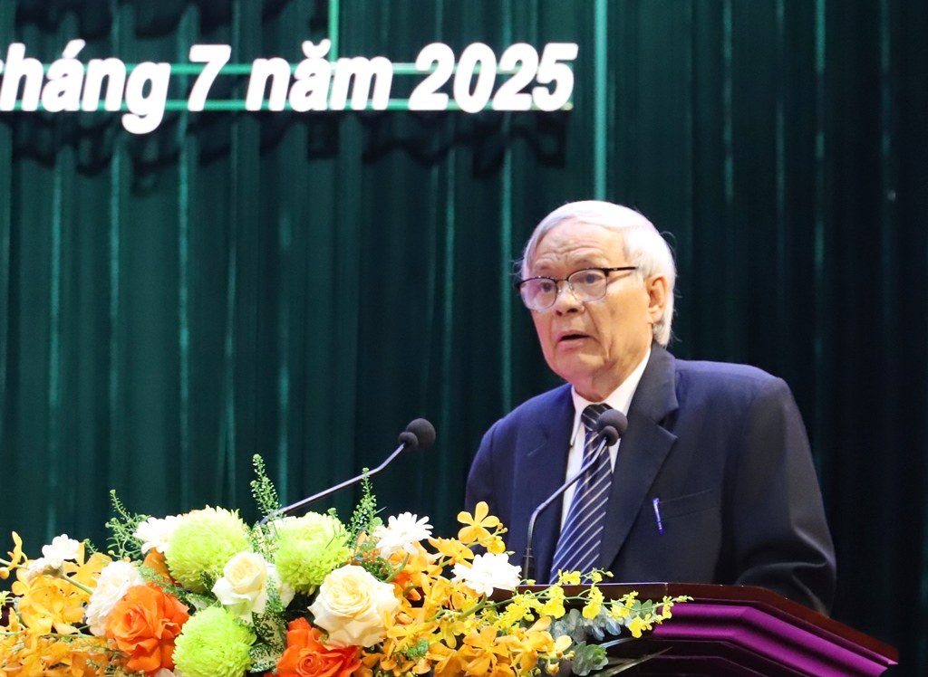 Đồng chí Lê Ngọc Hân, Nguyên Phó Bí thư Thường trực Tỉnh ủy, nguyên Chủ tịch HĐND tỉnh, nguyên Trưởng Đoàn ĐBQH tỉnh phát biểu tại buổi tọa đàm. |