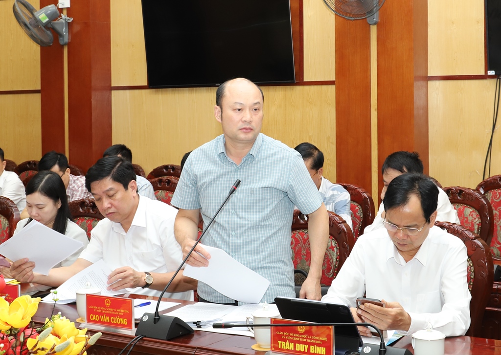 Đồng chí Cao Văn Cường, Giám đốc Sở Nông nghiệp và Môi trường phát biểu tại phiên họp. |