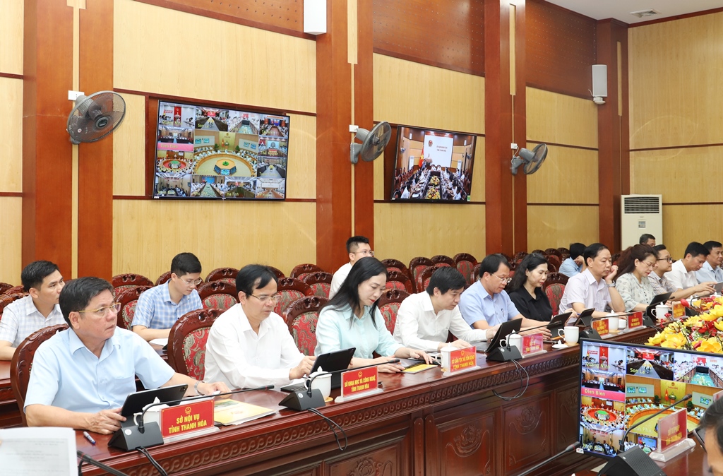Toàn cảnh hội nghị tại điểm cầu Thanh Hóa. |