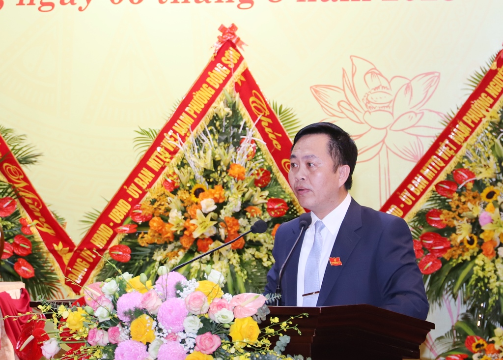 Đồng chí Lê Anh Xuân, Ủy viên BTV Tỉnh ủy, Bí thư Đảng ủy phường Hạc Thành phát biểu khai mạc Đại hội. |