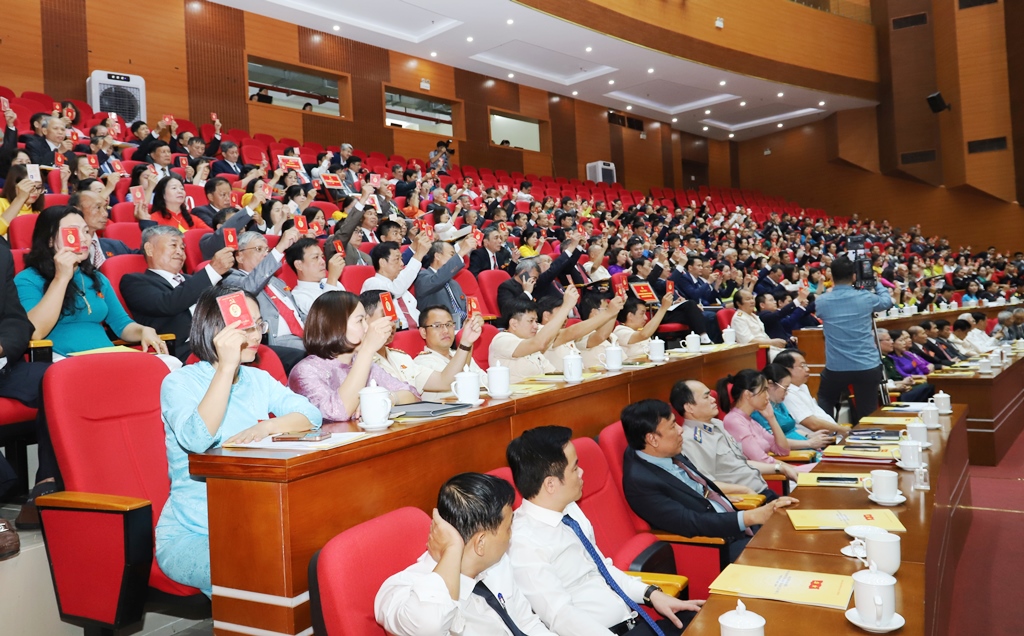 Các đại biểu biểu quyết thông qua Nghị quyết Đại hội. |