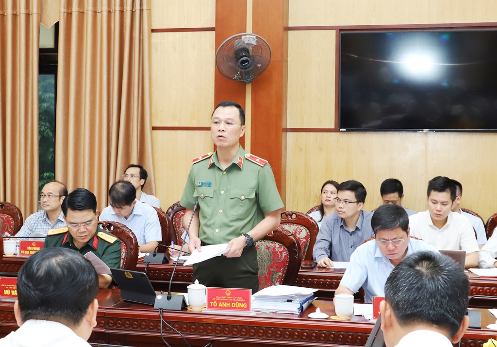 Giám đốc Công an tỉnh Tô Anh Dũng phát biểu tại phiên họp. |