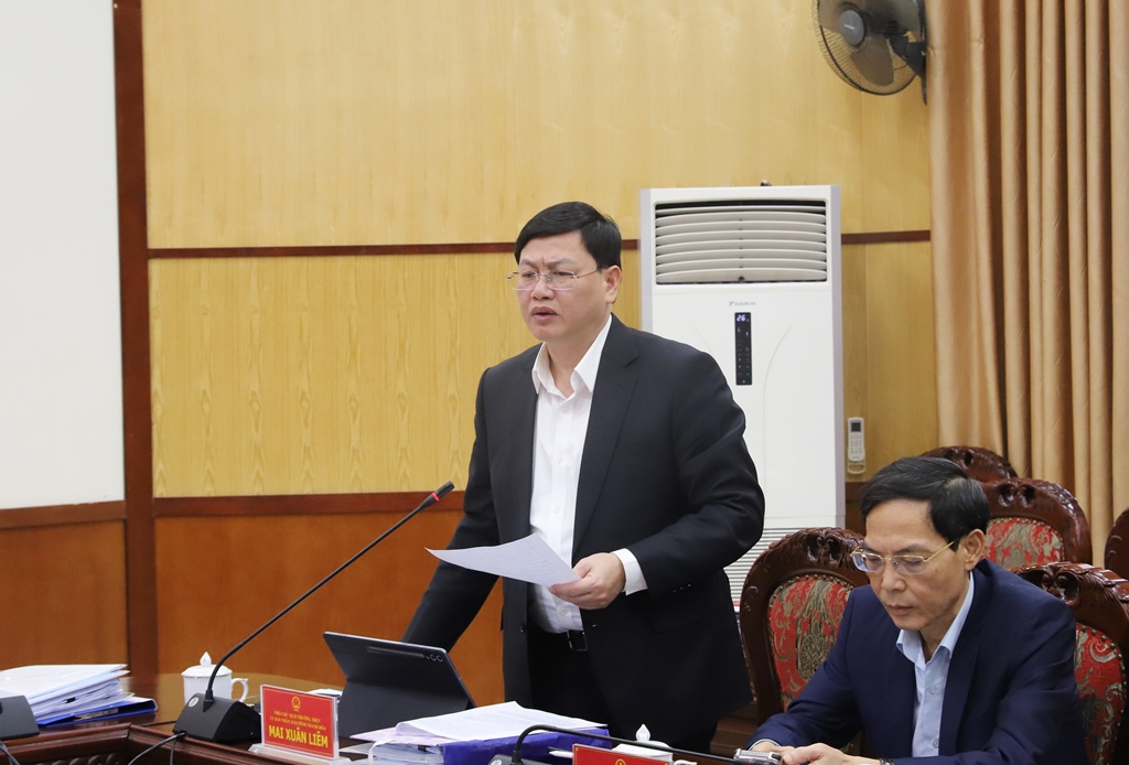 Phó Chủ tịch Thường trực UBND tỉnh Mai Xuân Liêm phát biểu tại phiên họp.