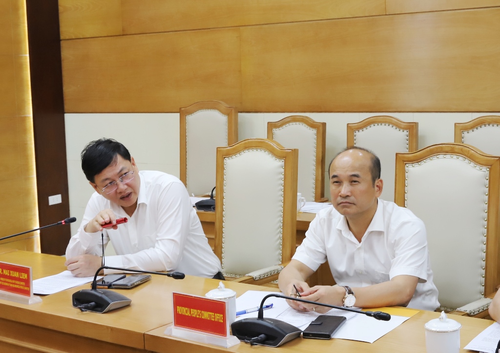 Tiếp và làm việc với đoàn công tác, về phía UBND tỉnh có các đồng chí: Nguyễn Hoài Anh, Ủy viên Trung ương Đảng, Phó Bí thư Tỉnh ủy, Chủ tịch UBND tỉnh; Mai Xuân Liêm, Ủy viên BTV Tỉnh ủy, Phó Chủ tịch Thường trực UBND tỉnh cùng đại diện lãnh đạo các sở, ngành, đơn vị liên quan.
