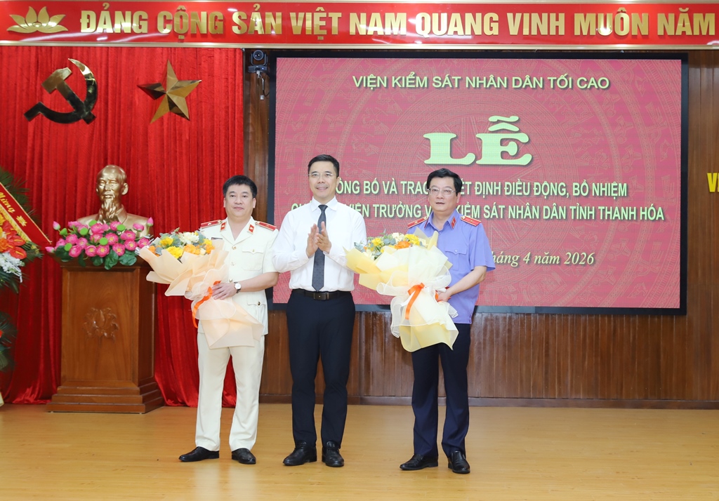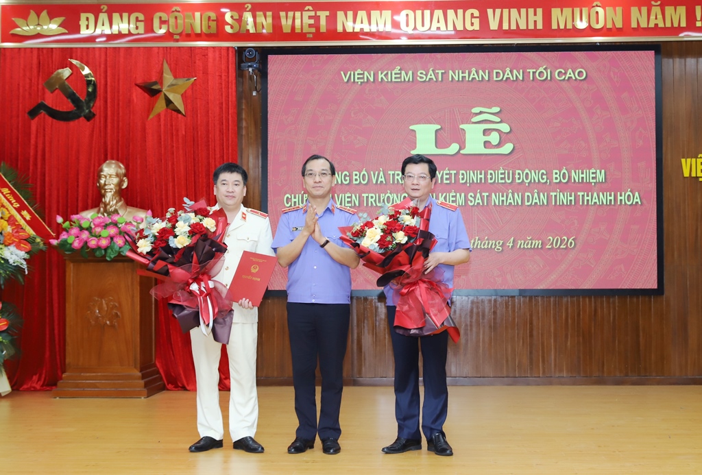 Trước đó, chiều 31/3/2026 VKSND Tối cao đã công bố và trao Quyết định của Viện trưởng VKSND tối cao về việc điều động, bổ nhiệm đồng chí Trần Thế Kính, Viện trưởng VKSND tỉnh Thanh Hóa giữ chức vụ Vụ trưởng Vụ 9, VKSND Tối cao kể từ ngày 1/4/2026.