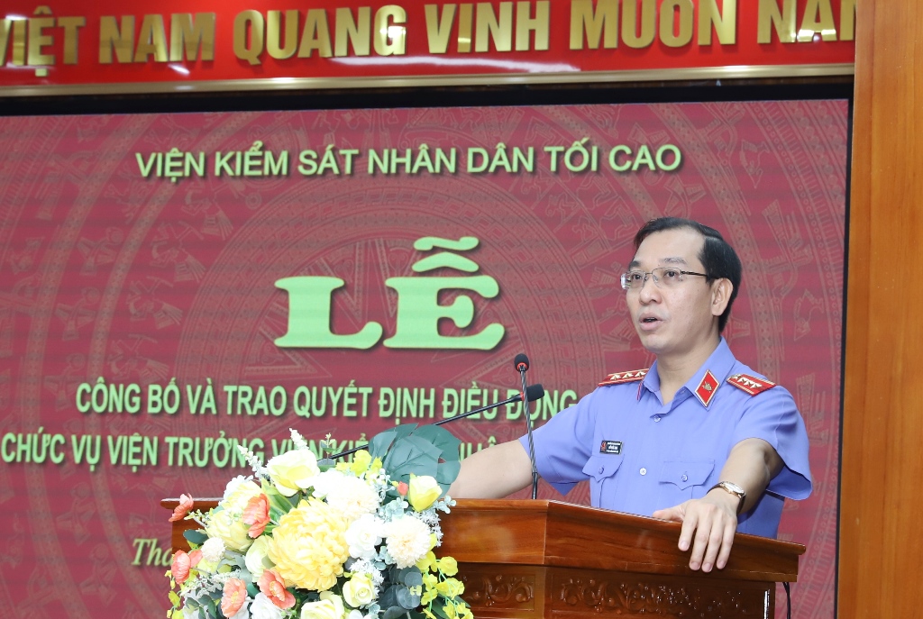 Đồng chí đề nghị Tân Viện trưởng VKSND tỉnh Thanh Hóa đề cao tinh thần trách nhiệm, giữ vững bản lĩnh nghề nghiệp, trau dồi hơn nữa trình độ chuyên môn, đạo đức, lối sống; tích cực, chủ động, sáng tạo, nêu cao tinh thần đoàn kết thực hiện thắng lợi các nhiệm vụ được giao. Nâng cao chất lượng giải quyết các vụ án dân sự, hành chính; phòng chống oan sai và chống bỏ lọt tội phạm, đấu tranh, phòng chống tham nhũng, lãng phí, tiêu cực...