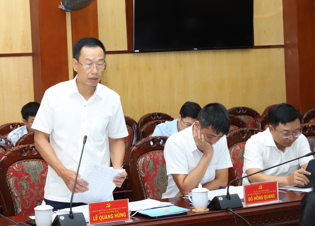 | Phó Chủ tịch UBND tỉnh Lê Quang Hùng phát biểu tại phiên họp. |