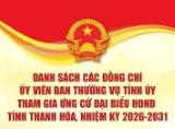 Danh sách các đồng chí Ủy viên Ban Thường vụ Tỉnh ủy tham gia ứng cử đại biểu HĐND tỉnh Thanh Hóa, nhiệm kỳ 2026-2031