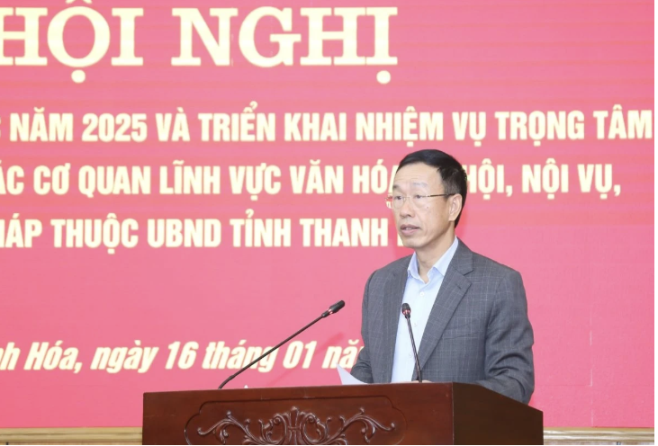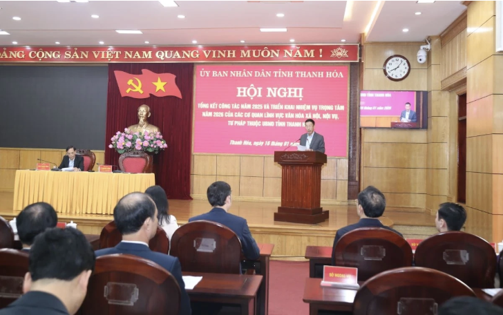 Sáng 16/1, UBND tỉnh Thanh Hóa tổ chức hội nghị tổng kết công tác năm 2025, triển khai nhiệm vụ trọng tâm năm 2026 của các cơ quan lĩnh vực văn hóa - xã hội, nội vụ, tư pháp thuộc UBND tỉnh. Các đồng chí Phó Chủ tịch UBND tỉnh: Lê Quang Hùng, Ủy viên Ban Thường vụ Tỉnh ủy; Đầu Thanh Tùng, Tỉnh ủy viên, đồng chủ trì hội nghị.