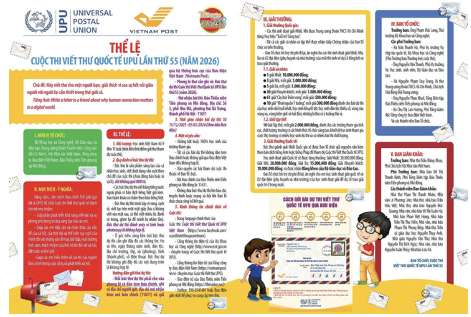 Cuộc thi Viết thư quốc tế UPU Việt Nam lần thứ 55 có chủ đề “Hãy viết thư cho một người bạn, giải thích vì sao sự kết nối giữa người với người lại cần thiết trong thế giới số”. Mỗi năm, Liên minh Bưu chính Thế giới (UPU) thường chọn một vấn đề hết sức nổi bật, những vấn đề mang tính toàn cầu và đầy tính nhân văn để đưa ra chủ đề của cuộc thi. Vì thế, khi tham gia cuộc thi, các em học sinh không chỉ rèn kỹ năng viết văn mà còn được thể hiện những hiểu biết và tình cảm của mình về những vấn đề mang tầm vóc thời đại. Theo đó, cuộc thi được triển khai từ ngày 19/12/2025 đến hết ngày 05/3/2026, đối tượng tham gia là học sinh Việt Nam từ 9 đến 15 tuổi.