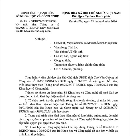 Trong bối cảnh cuộc cách mạng công nghiệp lần thứ tư đang diễn ra mạnh mẽ, khoa học công nghệ, đổi mới sáng tạo và chuyển đổi số (KHCN, ĐMST&CĐS) không còn là xu hướng, mà trở thành yêu cầu tất yếu đối với sự phát triển bền vững. Nhận thức rõ điều đó, tỉnh Thanh Hóa đã khẩn trương triển khai thực...