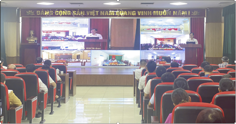 Chiều ngày 21/8, Sở Khoa học và Công nghệ Thanh Hóa phối hợp với Sở Nội vụ cùng các đơn vị liên quan tổ chức hội nghị tập huấn, hướng dẫn và giải đáp các khó khăn, vướng mắc cho các xã, phường về lĩnh vực Khoa học và Công nghệ; Nội vụ. Hội nghị được kết nối trực tuyến từ điểm cầu Sở Khoa học và Công nghệ đến 166 điểm cầu tại các xã, phường trên toàn tỉnh với 1.073 đại biểu tham dự.
